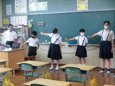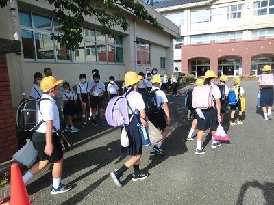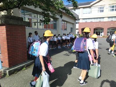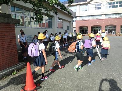 熱中症警戒アラートが発令されている暑い日でしたが、今朝からあいさつ運動が始まりました。今週末まで地区ごとに行います。今日は「二ツ屋地区」が担当です。二学期が始まりましたが、一学期の頃に比べるとややあいさつの声が小さく感じられます。このあいさつ運動を契機に元気なあいさつができるようになってほしいと思います。