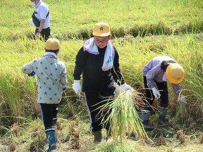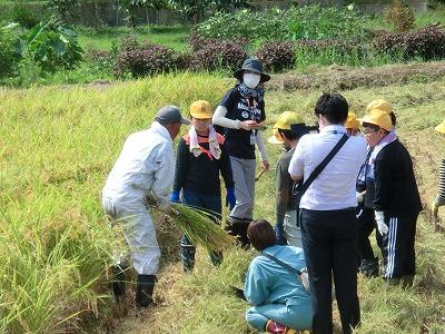 本日、5年生が稲刈り体験をしました。春に田植えの体験をしましたが、あれから4か月がたち、立派に育ちました。東さんをはじめ、中沼生産組合の方々のご指導の下、上手に稲刈りをしました。熱中症予防のため、少し時間を短縮して行いました。とても貴重な体験になりました。