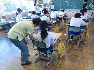 今、児童は、県硬筆書写コンクールに向けて練習を行っています。今日は、地域の先生である城村政子先生にご来校いただき、児童の指導をしていただきました。1限は4年生、2限は5年生、3限は2年生が指導を受けました。1,3,6年生は、8日(木)に指導していただきます。子どもたちの真剣な表情がとても印象的でした。