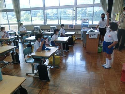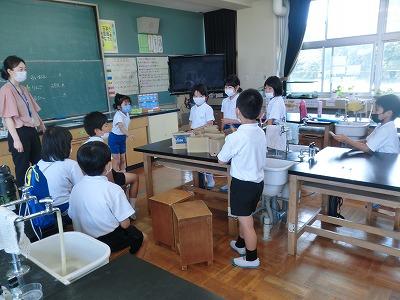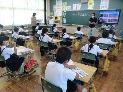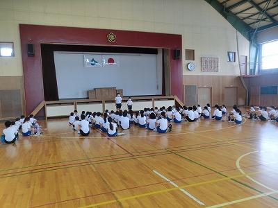 今、4年生は総合学習の時間に「大海川」について調べています。今日は、石川県水産総合センターの方にご来校いただき、「川にすむ魚」についていろいろお話していただきました。子どもたちは、一生懸命にメモをとりながら話を聞いていました。