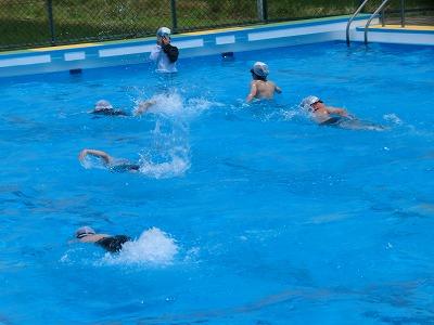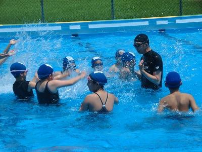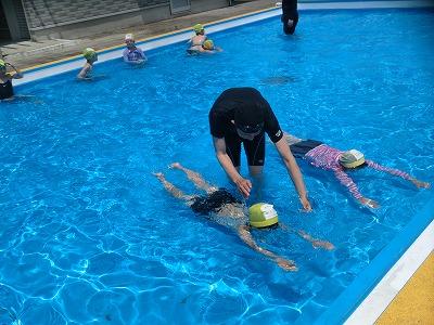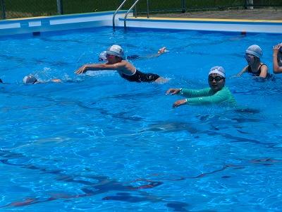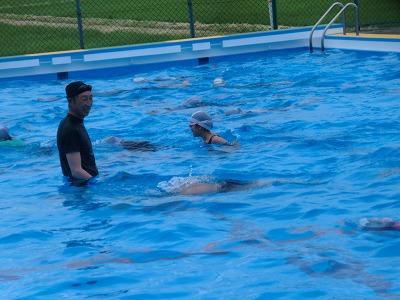 今日もクラブパレットの西田さんに水泳の指導をしていただきました。3限目に5年生、4限目に4年生が指導していただきました。とても上手に「けのび」ができるようになったと思います。1学期の終わりには、多くの児童が25m泳げるようになっているのでは、と期待します。