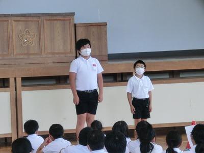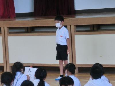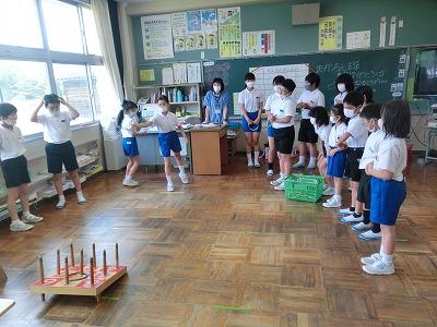 児童会の企画運営委員会主催で「なかよしラリー」を行いました。6年生が企画・準備したクイズやゲームで、なかよし班ごとに協力しながら楽しみました。「輪投げビンゴ」や「ピンポン投げゲーム」では、友だちを一生懸命応援する姿が見られました。「〇〇といえば」「私は誰でしょう」「ジェスチャーゲーム」では、みんなで考える姿が見られました。「新聞紙島」では、小さくなった新聞紙の上で必死にバランスをとっている姿が見られました。そして、何よりみんながとても楽しそうにしている姿が印象的でした。