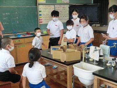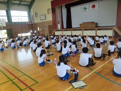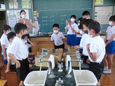 今週になって、暑い日が続きますが、それに合わせるかのように、体育の時間に水泳の授業が始まりました。先週はプール開きで、5,6年生だけが入りましたが、今週は1~4年生もプールに入って、水泳の練習をしました。クラブパレットの西田さんにも水泳指導に入っていただきました。子どもたちは、皆楽しそうにしていました。頑張って25m泳げるようになってください!