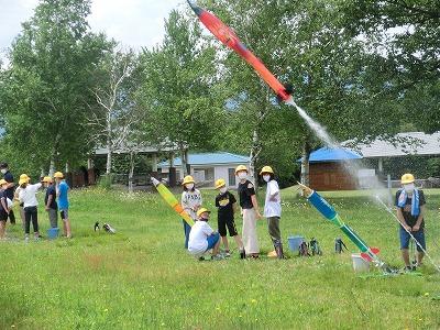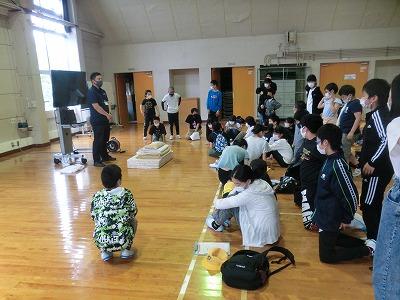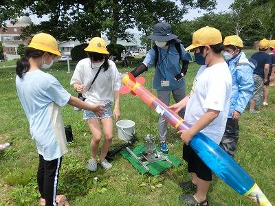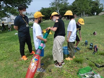 5,6年生が、5/26,27に1泊2日で、キゴ山へ宿泊体験学習に行きました。宿泊を伴う体験学習は3年ぶりの実施です。この日を楽しみにしていた5,6年生は朝から元気一杯でした。1日目最初の活動は「バルーン水ロケット発射」です。バルーンに入れる水の量や送り込む空気の量を考えながら班で協力しながら飛ばしました。たくさん飛ぶと大きな歓声が上がりました。