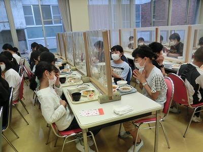 ☆1日目の夕食、疲れた体にエネルギー充填です。この後、お風呂に入り、肝試しをして1日目の活動が終了しました。