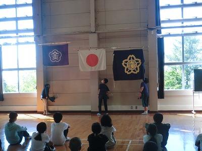 ☆2日間の活動が終わり、「別れのつどい」となりました。国旗、校旗等が降納され、所長さんの挨拶、代表挨拶と続きました。所長さんのお話では、子どもたちのことをたくさん褒めていただきました。お世辞抜きに本当によく頑張っていたと思います。