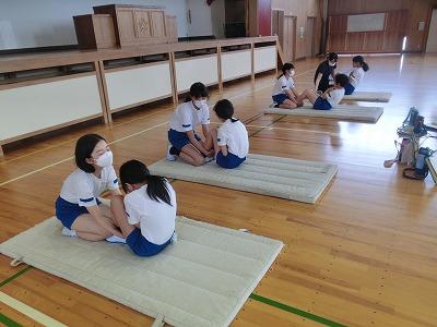 ☆「夕べのつどい」では、職員の方からベッドメイキングと片付け方についての説明がありました。やり直しにならないように皆、真剣に説明を聞いていました。