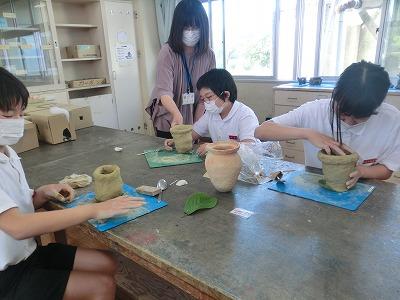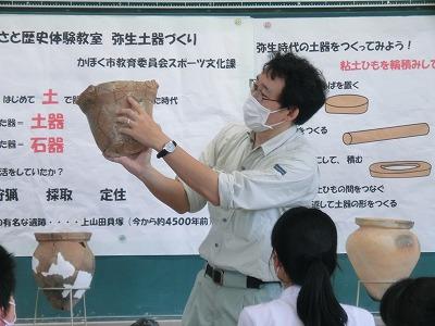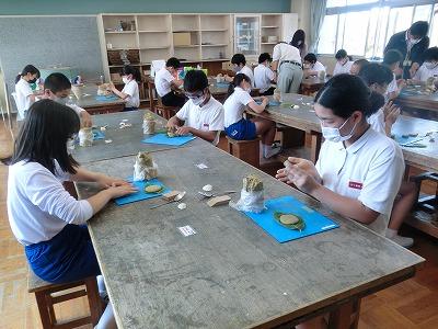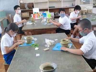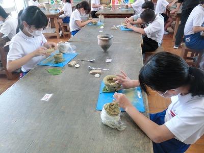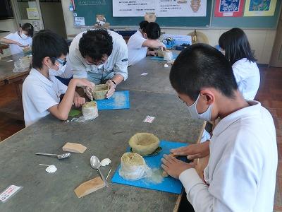 本日、5,6限目に6年生が弥生土器作りに挑戦しました。かほく市教育委員会スポーツ文化課の方々にご指導いただきました。もっと時間がかかるかと思いましたが、皆、けっこう手際よく上手に作り上げていました。1か月ほど乾燥させてから焼いて完成するようです。焼き上がりが楽しみです。