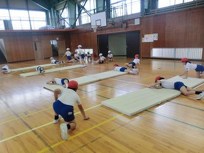 今日から4年生が器械運動交歓会に向けて練習を開始しました。これから6月3日(金)の本番に向けて、放課後に体育館で練習を行います。まず、マット運動の練習から始めました。体育の時間では、もうすでに練習が始まっていたのでスムーズに練習に入っていました。今日はこの後、鉄棒の練習も行いました。本番に向けて、頑張っていきましょう。