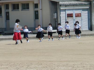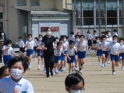 本日、今年度最初の避難訓練を行いました。天候に恵まれ、予定通り運動場に避難できました。教頭先生の放送による避難指示をしっかり聞いて、すばやく、そして落ち着いて避難することができました。最後に1年生と一緒に、避難の時の大事な合言葉「おはしも」を確認しました。本日は火災対応の避難訓練でしたが、今後、地震や不審者侵入など、想定をいろいろ変えて実施していきます。