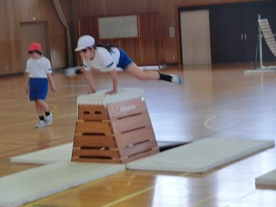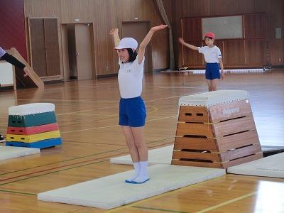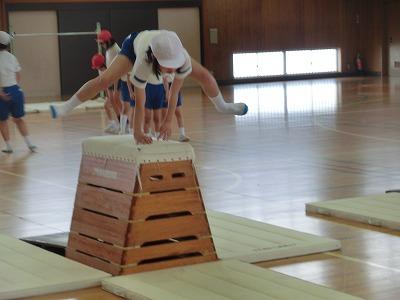本日5限目に4年生が体育の時間に跳び箱の練習をしていました。あと、2週間ほどで器械運動交歓会ということもあり、とても一生懸命に練習していました。跳び終わった後のポーズにも気をつけながら練習していました。がんばれ!!