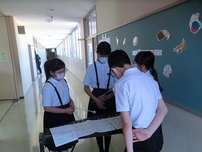 本日、1,2限目に5,6年生が市音楽会に向けて合奏練習をしました。曲は、ディズニーのアニメ映画「ズートピア」の主題歌「トライ エヴリシング」です。それぞれのパートごとに分かれて練習していました。2限目には、まず6年生だけで合奏してみました。それを聞いた後、5年生だけで合奏しました。どちらも初めてにしては、しっかり音が合っていてよかったと思いました。これから本番に向けてどんどん上手になっていくと思います。なお、今年度は、新型コロナウィルスの感染対策として、市内の小学校が集まって発表会をするのではなく、それぞれの学校で演奏を録画して、それを1つにまとめたDVDを作成し、各校で視聴するという形式です。この様子は、かほく市ケーブルテレビでも放映されます。また、6月15日(水)の授業参観の日にも保護者向けに発表会を行います。