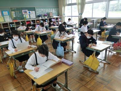 本日、子どもたちの学習状況を把握し、今後の授業改善に役立てるために学力調査を行いました。本日は、4年と6年が石川県の学力調査(4年は国語と算数、6年は社会)、5年がかほく市の学力調査(国語と算数)を実施しました。どの子も一生懸命に取り組んでいました。明日は、6年生が全国学力調査(国語、算数、理科)に取り組みます。