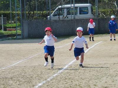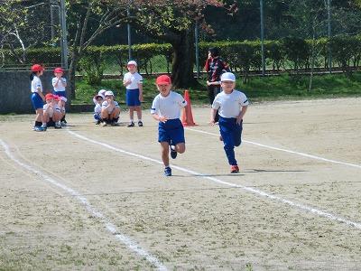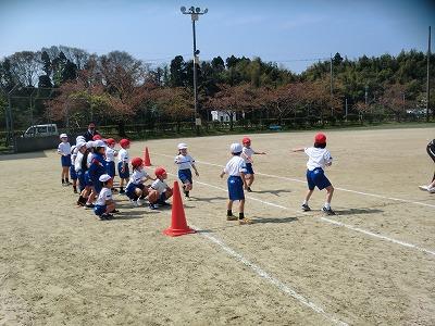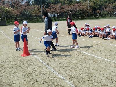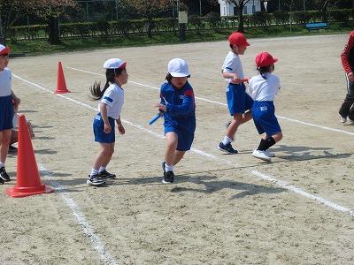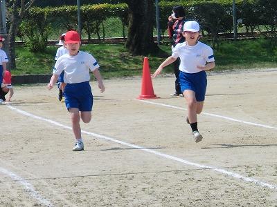 春らしい好天に恵まれた本日、運動場からにぎやかな声が聞こえてきました。見ると、1,2年生が体育で運動場に出ていました。50mのタイム測定とリレーをしていました。50m走は速い子で9秒台前半のタイムでした。リレーも皆、楽しそうに走っていました。元気にたくましく成長してほしいと思います。