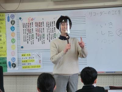本日2限目に3年生が中村俊子先生をお招きして、リコーダー講習会を行いました。3年生は、初めてリコーダーに触れるということで、演奏する際の基本的なことを中心に指導していただきました。子どもたちは、初めてのリコーダーに興味をもって意欲的に取り組むことができました。