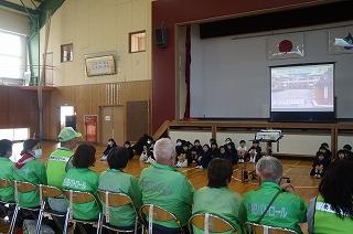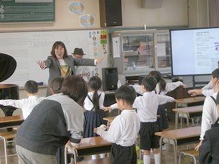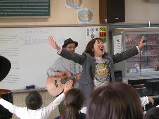 PFUブルーキャッツ石川かほくの公式テーマソングを手掛けたTakaisoundさんにご指導いただき、1,2年生の子たちが楽しく歌い、元気いっぱいに表現することができました。Takaisoundさん、ありがとうございました。