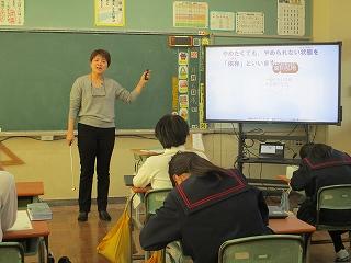 5限目に薬物乱用防止教室を行いました。金城大学の曽根志穂先生に来校していただき、薬物の怖さや誘われた時にどうするかについて詳しくお話していただきました。子供たちも真剣に聞き、考えていました。曽根先生ありがとうございました。
