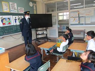 津幡警察署の方に来校していただき、2,5年生がピュアキッズスクール(非行防止学習)を行いました。2限目には2年生が「してよいこととわるいこと」について、3限目には5年生が「ネットトラブル」について考えました。どちらの行為も、当事者はもちろん、周りの人たちも悲しい気持ちになることを学びました。津幡警察署員様、ありがとうございました。