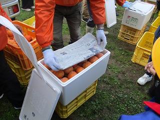 瀬戸町の柿の木畑へ行き、紋平柿の収穫をしました。高松小3年生の人たちと一緒に体験させてもらいました。クマ対策も万全な中、収穫と脱渋の体験をしました。たくさんの柿をもらってニコニコ顔で帰ってきました。