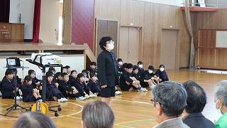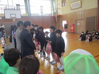 日頃、お世話になっている方々に感謝の気持ちを伝える集会を行いました。来ていただいた皆さんに感謝のメッセージ、全校児童の歌、収穫したお米、鉢花をプレゼントし、日頃の感謝の気持ちを伝えました。