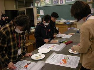 工作クラブでは、押し花アートの葛葉先生にご指導いただき、押し花作品を作っていました。校長室にも葛葉さんのすてきな作品を飾っていただきました。葛葉さん、いつもありがとうございます。