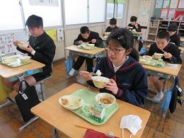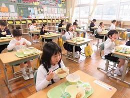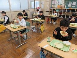 かほく市の給食は、ふるさとかほく市の特産物や、他県、世界各国の給食等、毎日美味しい給食が工夫されて提供されています。今回は絵本給食でした。図書館司書の先生の絵本の朗読を聞きながら、子どもたちは、笑顔で美味しそうに食べていました。まだまだ寒い日は続きますが、大海っ子たちは、給食でエネルギーをチャージして頑張っています。