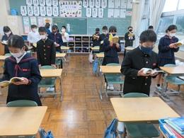 いよいよ本格的に雪の季節になりました。大海っ子たちは、寒さに負けずにがんばっています。6年生は、思い出の写真をタブレットを使って選び、1年生は、年長さんをお迎えするための練習をしていました。読書や発表も上手になってきました。