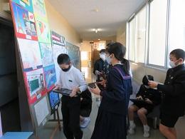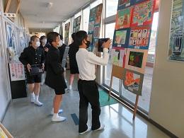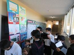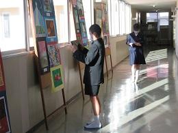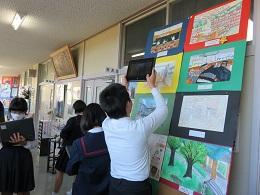 高学年は、図工の時間に展示中の河北郡市内小学校の図画作品の中から心に残る良い作品を選んで撮影し、鑑賞学習をしていました。