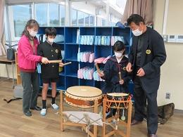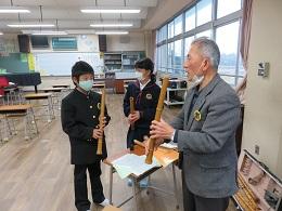 音楽クラブは、高松民謡会の方々に、太鼓、尺八、三味線の邦楽楽器を教えていただき、民謡の演奏にも初挑戦してみました。1月放送のNHKかがのとイブニングの『がっぱクラブ』では、スポーツクラブと音楽クラブが紹介されます。