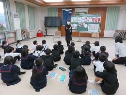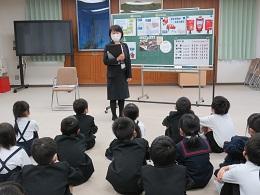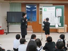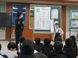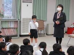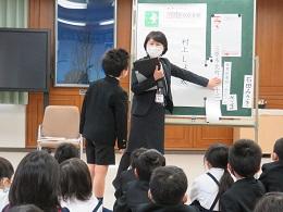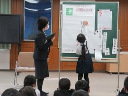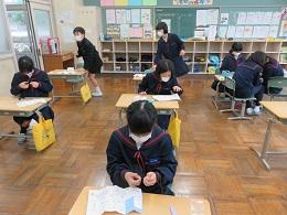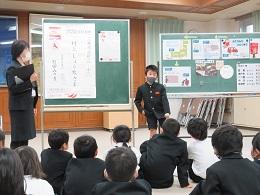 低学年の子どもたちは、先日年賀状を書く学習をしましたが、今日は、二ツ屋郵便局長さんからはがきや年賀状等、郵便について教えていただきました。はがきと年賀状の違いなど、今まで知らなかったことをたくさん教えていただいて、郵便への興味がわいたようでした。最後の振り返りでは、「宛名を正しく書かないとちゃんと届かないから気をつけたい」など、しっかり学べたことが分かる振り返りが多かったです。