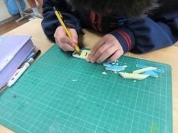 4年生以上の高学年のクラブ活動では、消しゴムスタンプ作りや羽子板など、お正月に向けた活動もしています。