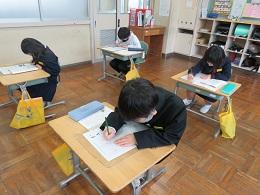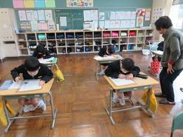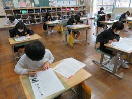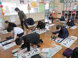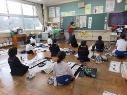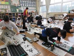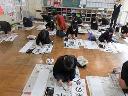 いよいよ書初めの練習が始まりましたが、いつも外部ティーチャーの城村先生に教えていただいている成果が見えました。お手本を確かめながらゆっくり慎重に書いている子どもたちは多くいますが、冬休みには、のびのびと元気な字を書いて欲しいと思います。