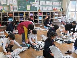クラブ活動では、消しゴムスタンプ作りや羽子板遊びなど、それぞれに工夫しながら新しい活動に挑戦しています。