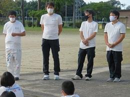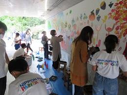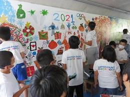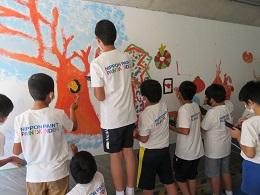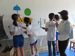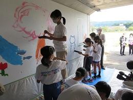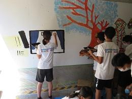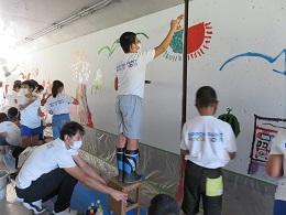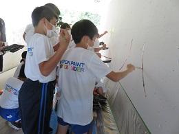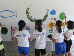 今年も(株)日本ペイント様の多大なご協力をいただき、アフリカンペイントアーティスト(日本ペイントアンバサダー)のSHOGENさんのご指導のもと、「自分を信じて!心の色で!いいね!」と励ましていただきながら描き切ることができました。これまで多大なご協力ご支援いただきました保護者の皆様、地域の皆様、卒業生の皆さん(中学生、大学生)、市役所の皆様等々、多くの方々と一緒にこの活動ができましたこと、本当に感謝申し上げます。ありがとうございました。これからも、大海の元気パワーポイントとなれればと思っています。よろしくお願いします。