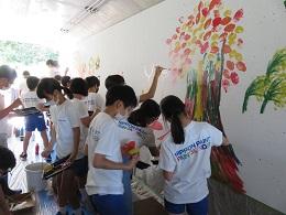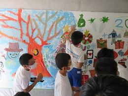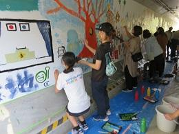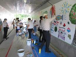 二年目を迎えたトンネルアートプロジェクトは、高学年の大海っ子たちと支えていただいている多くの方々の力を合わせて、完成させることができました。大海の春夏秋冬や一年の学校行事が描かれたトンネルアートです。