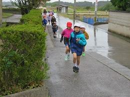 空を眺めながらのマラソン大会になりましたが、大海っ子たちは、日頃の練習を活かし、最後まであきらめることなくゴールを走り抜けてくれました。多くの方々に沿道での応援をいただき、ありがとうございました。天候を考慮しながらの進行で、走行順や時間等の変更で、保護者の皆様にはご迷惑をおかけしました。本当に申し訳ありませんでした。今日頑張ったことは、きっとそれぞれのご家庭での話題にしていただけていると思います。温かい言葉をかけてあげてください。よろしく願いします。