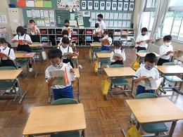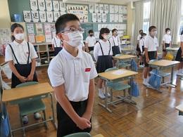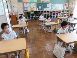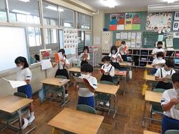 毎朝、各学級で今月の歌を歌っていますが、まだ大きな声で歌うことができません。でも、小さな声ですが、みんなで綺麗な声を響かせようとしています。その日の健康状態を当番が聞く学級もありますが、聞こえる声で答え、以前ほど非常に元気な大きな声で・・・、ということもありません。思いっきり大きな声をお腹から出すという経験を、ぜひ実感させてあげたいものです。落ち着いて静かな大海小ですが、少し寂しいものがあります。