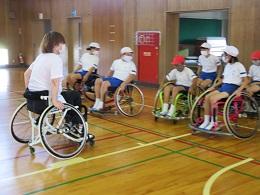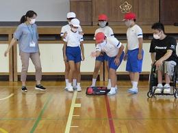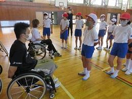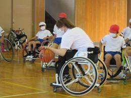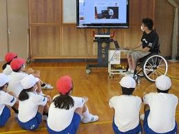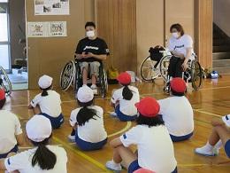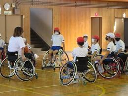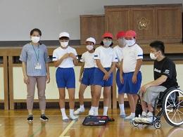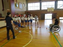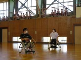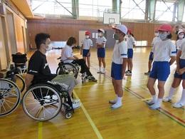 県内で活動する車椅子バスケットボールクラブ「Jamaney石川」の岩崎選手、半田選手に来ていただきました。お昼休み時間に、全校でお二人の素晴らしいプレーを見せていただきました。5年生は、給食時間は、パラリンピックについての解説をしていただき、午後からの授業では、日常の生活の様子や車椅子バスケットとボッチャを教えていただき体験することができました。