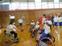 2021年10月9日 21時13分県内で活動する車椅子バスケットボールクラブ「Jamaney石川」の岩崎選手、半田選手に来ていただきました。お昼休み時間に、全校でお二人の素晴らしいプレーを見せていただきました。5年生は、給食時間は、パラリンピックについての解説をしていただき、午後からの授業では、日常の生活の様子や車椅子バスケットとボッチャを教えていただき体験することができました。