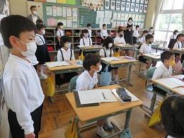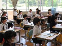 先日から大海小学校では、子どもたちによる相互授業参観を行っています。