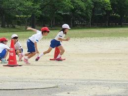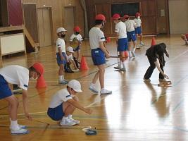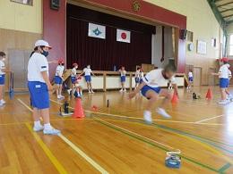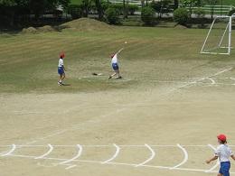 3年生から6年生までの子どもたちの体力テストを実施しました。反復横跳びやソフトボール投げ等の種目に挑戦しました。
