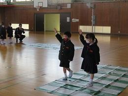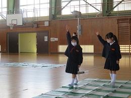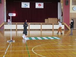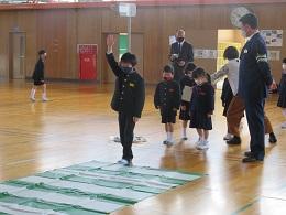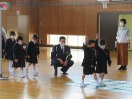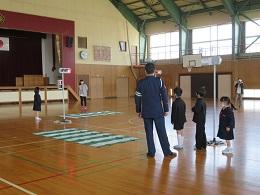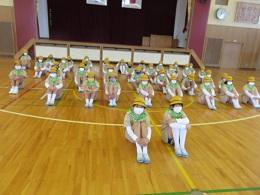 音楽室でビデオを見てから体育館で実際に活動しました。子どもたちは、緊張しながらも交通安全に気をつけようと一生懸命でした。かほく市防災環境対策課(市交通安全協会)にもご協力いただきました。交通安全ノートやにゃんたろうキーホルダー等もいただきました。ご家庭でも交通安全を心掛けるようにご指導よろしくお願いします。