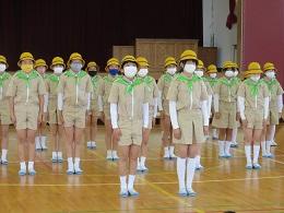 みどりの少年団の結団式が行われました。団長、副団長により、自然を愛し、命あるものを愛し、思いやりの心をもって積極的に行動する決意が力強く述べられました。