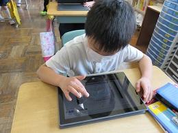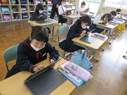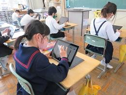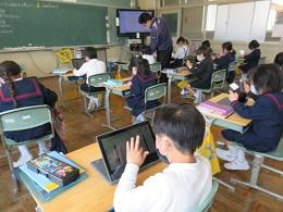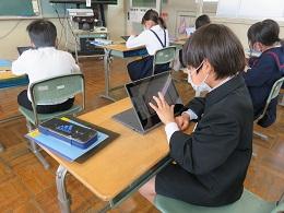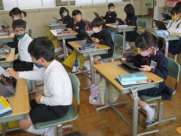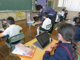 大海小学校も一人一台端末として、タブレットコンピュータが配備されています。今はまだ操作方法に自信がない子どもたちがほとんどですが、様々な学習活動で少しずつ慣れていき、有効に活用できるようになる日も案外近いかもしれません。