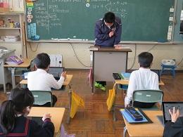 今回は3年生の算数で使っていました。それぞれで考えた掛け算の工夫を教え合っていました。他の子どもたちの考え方も簡単に見ることができて、「楽しい」「へーっ、そうか」という声が上がっていました。