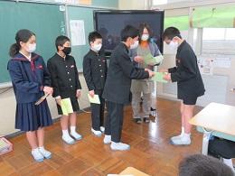 図書室の本をたくさん借りて読んだ6年生に、図書委員会より読書賞が贈られました。