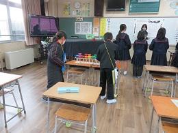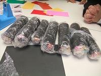 最近の昼休みは、ビーズや水引等を使った手作り作品を作りに子どもたちが校長室に来てくれています。今日は、124年ぶりの「2月2日の節分」ということで、色紙を使った恵方巻作りに挑戦してもらいました。とても上手にあっという間に仕上げていました。