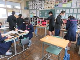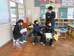 また、来てくれた3年の子どもたちは、自分たちがお世話していた大豆を、家で豆まきができるように小袋に入れて、給食の時間に全校児童に配ってくれました。