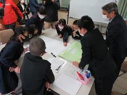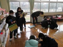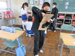 6年生は、かほく市福祉協議会と防災環境対策課の方に教えていただいて、HUG(避難所運営ゲーム)活動を行いました。地震災害が発生し、学校が避難所になった場合を想定した学習です。いろいろな条件を抱えて避難される場合があることやどのような場所に案内すればいいのかということなど、貴重な学びの体験となりました。