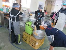 大豆を蒸した良い香りをかぎながら、今年は班ごとに離れて活動しました。最後の掃除までしっかりとやりきりました。
